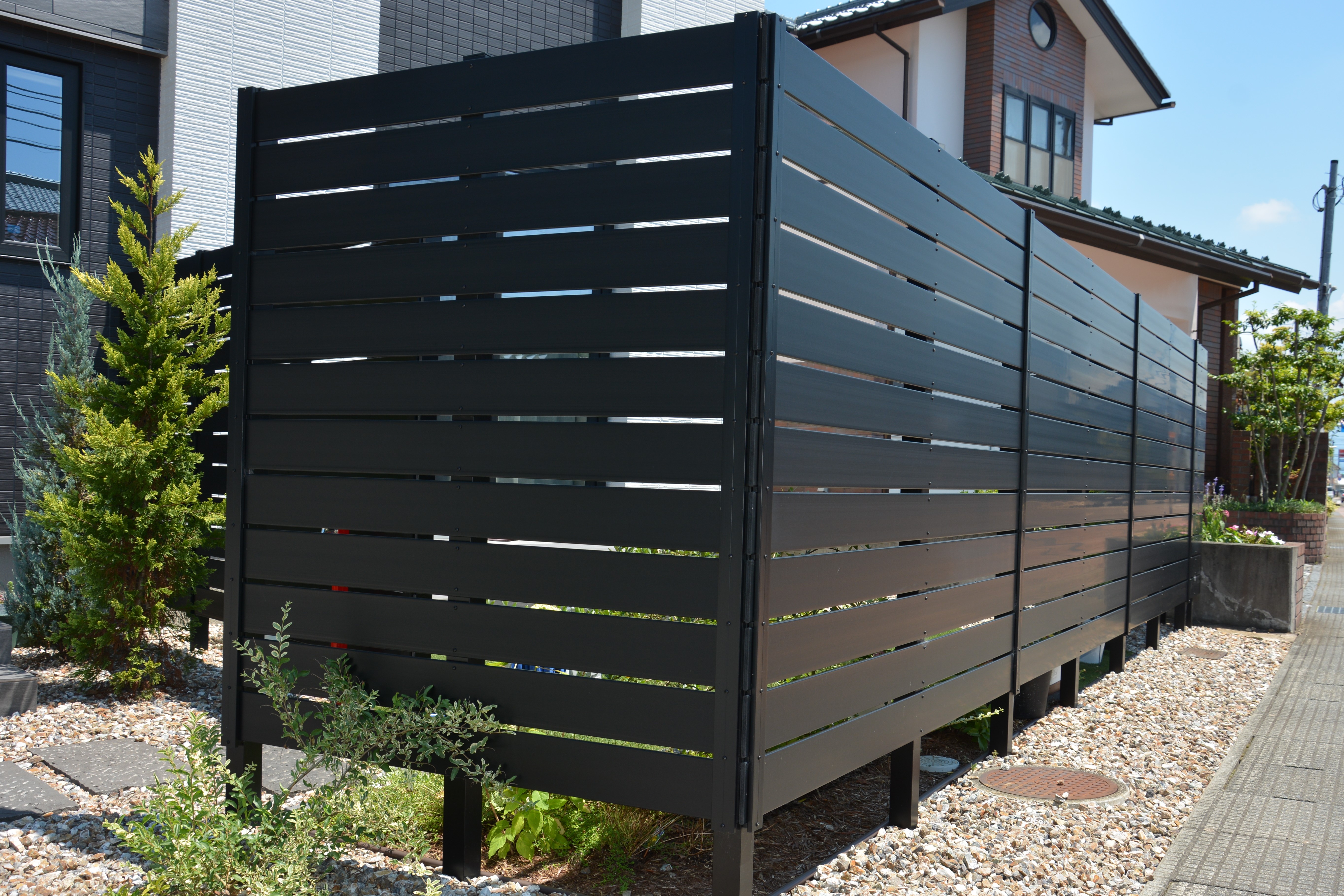 道路やお隣の敷地から、お庭や家の中への視線をカットするのに有効な目隠しフェンス。