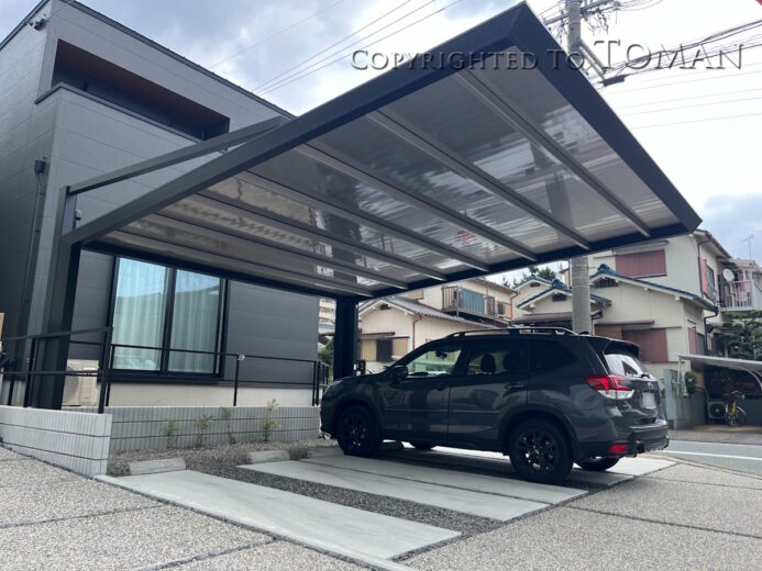 【商品紹介】アルミ屋根に変更でスタイリッシュさ抜群の後方支持カーポートに!四国化成のマイポートシリーズ