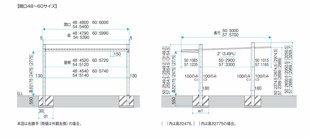 両側支持仕様のFⅡは、敷地や使い勝手に合わせた梁延長が可能です。