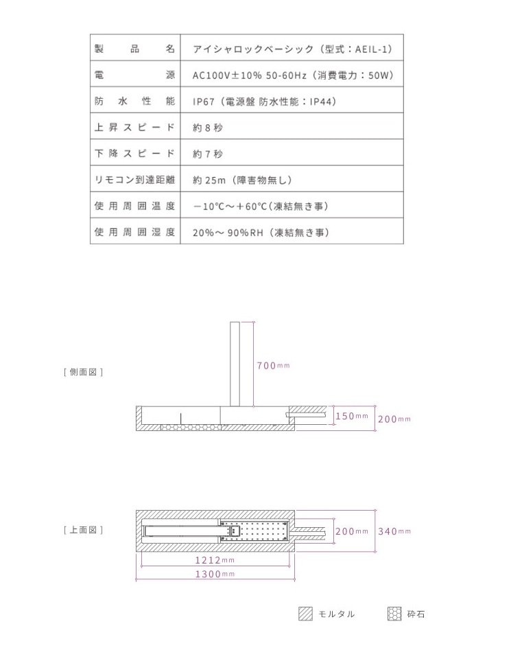 アイシャロックは自宅駐車場に設置する電動式の自動車盗難防止装置です。