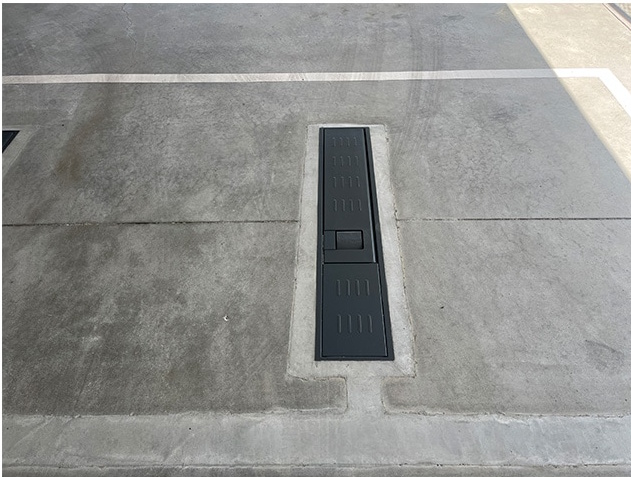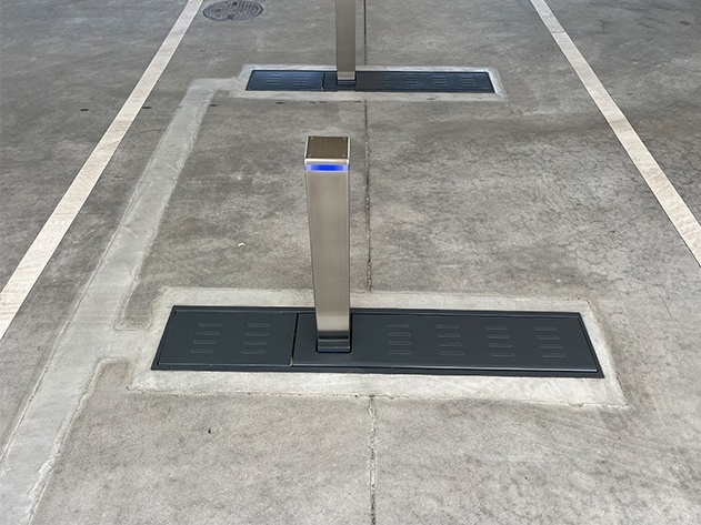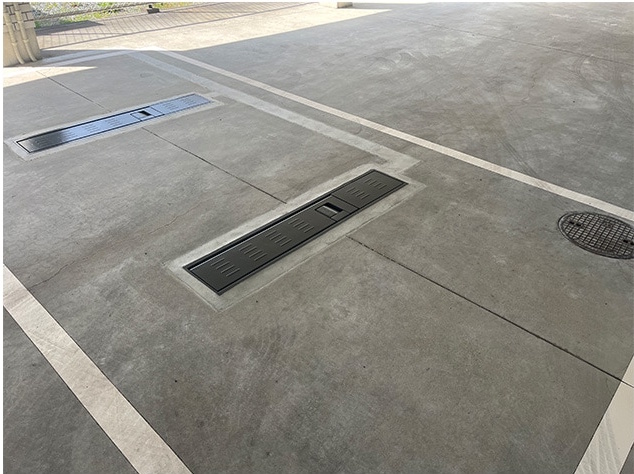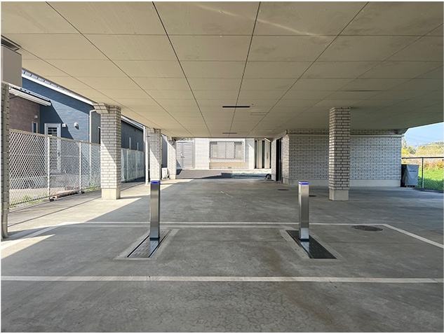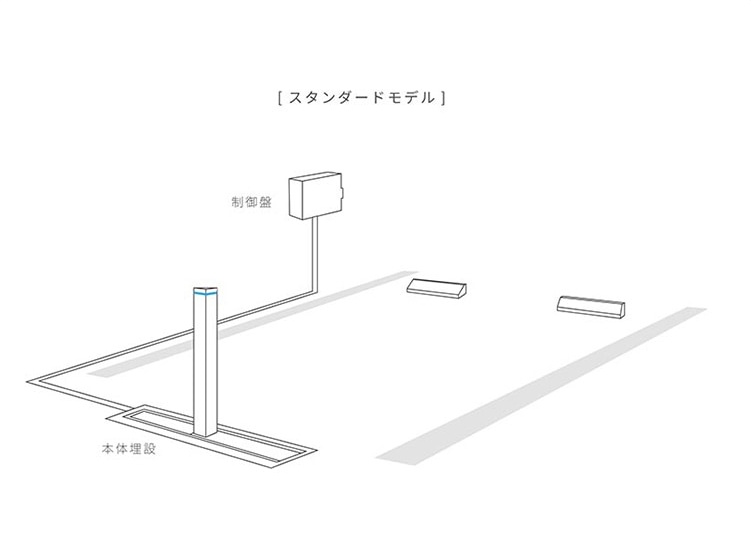 バリケードの下降時(収納時)には地面とフラットになります。本体の上を車が乗り入れても問題ありません。