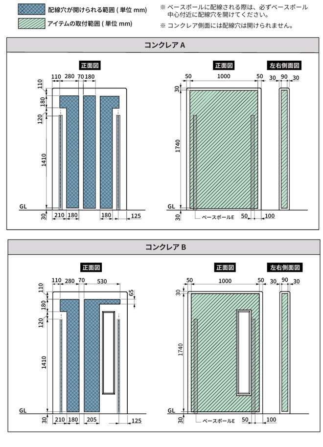 対してコンクレアは上端に雨水のルートを確保しウォール面に雨だれなどの汚れが付きにくい工夫が施され、表面は防汚コートでコーティングされています。コンクリート素材も不使用のため白華現象の心配もなく、ローメンテナンスで長くご愛用頂けます