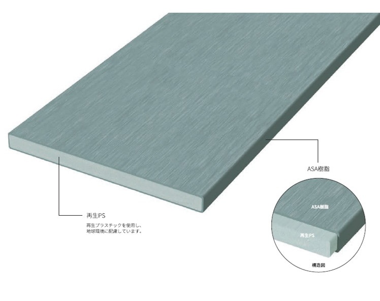 表層には高耐候樹脂ASAを使用し紫外線対策を強化しました。