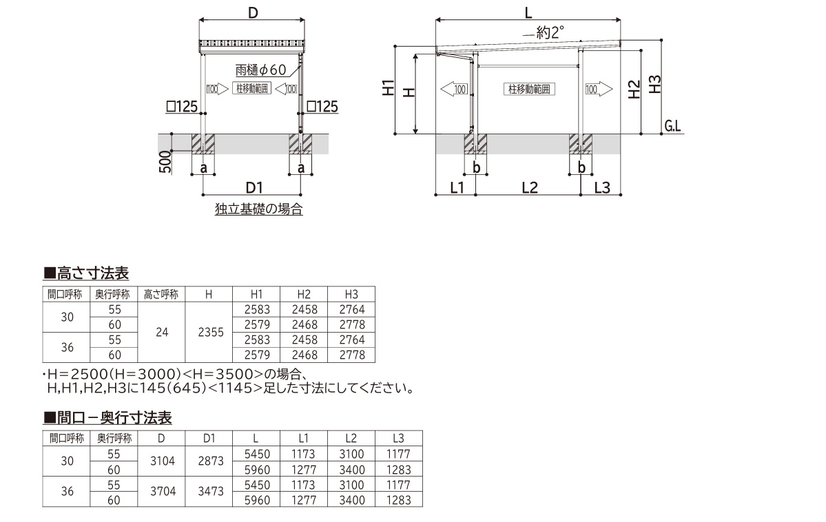 1500タイプは耐積雪50cm仕様です。