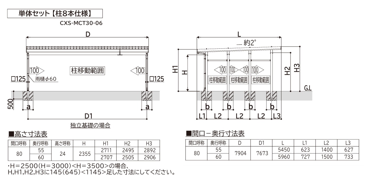 YKKap ジーポートPro 3000タイプ 3台用 柱8本 軒天パネルなし