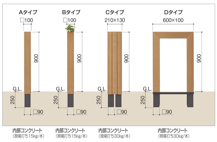 〇商品のみご購入の場合、内部コンクリートの充填は現場打ちになりますので費用には含まれておりません。施工者様にて別途ご手配ください