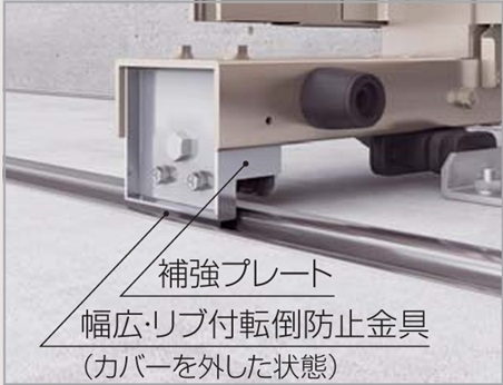 引き戸が閉じてるとき、強風の負荷がかかる台車まわりと本体連結部分の強度をアップすることで