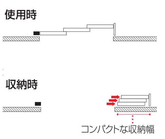 本体重ね合わせ方式の為、ゲートの収納時の収納幅がコンパクトになります。