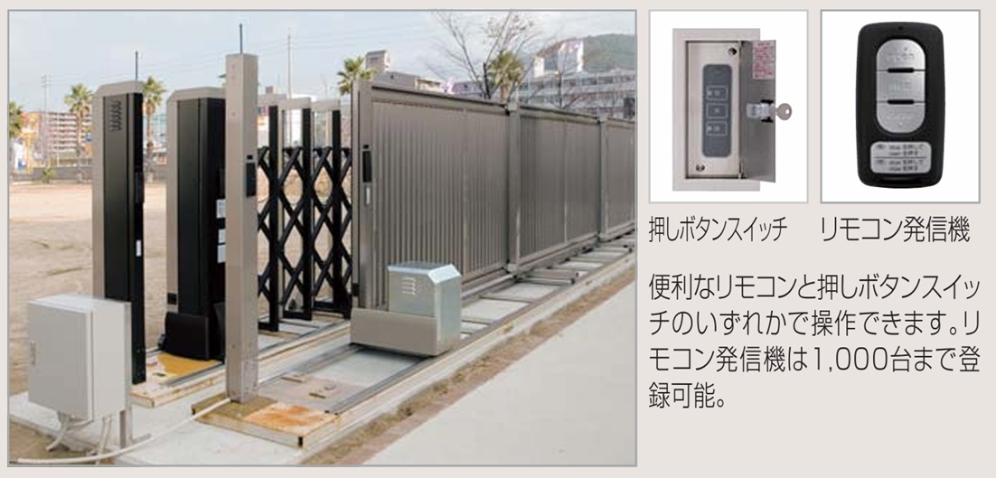 両開き仕様は開口幅が最大24mまでラインナップされ、施設のゲートなどにおすすめです