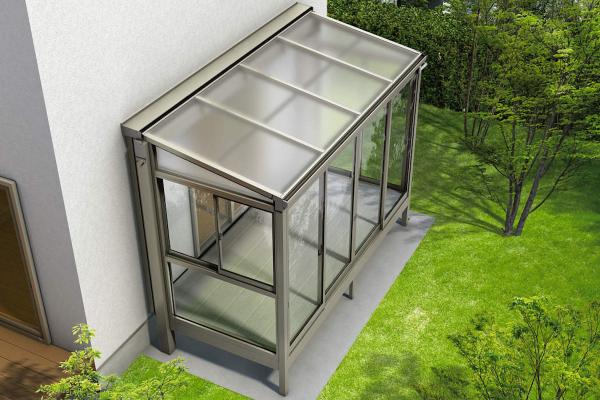 独立施工専用の柱を仕様することで、住宅の外壁に固定せず、自立した新しい構造のテラス囲い。