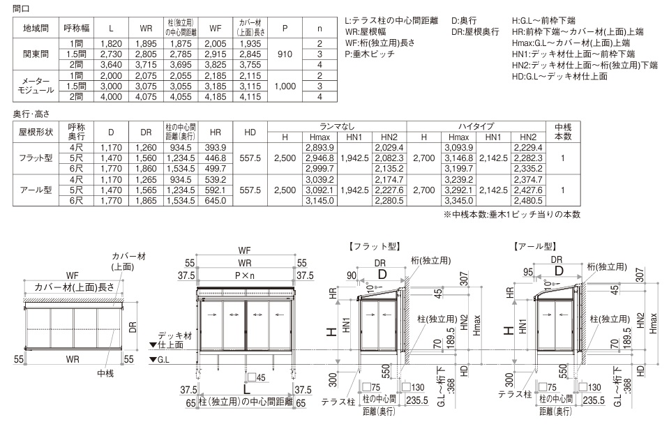 側面:テラス窓(※4尺・5尺の場合は高窓)