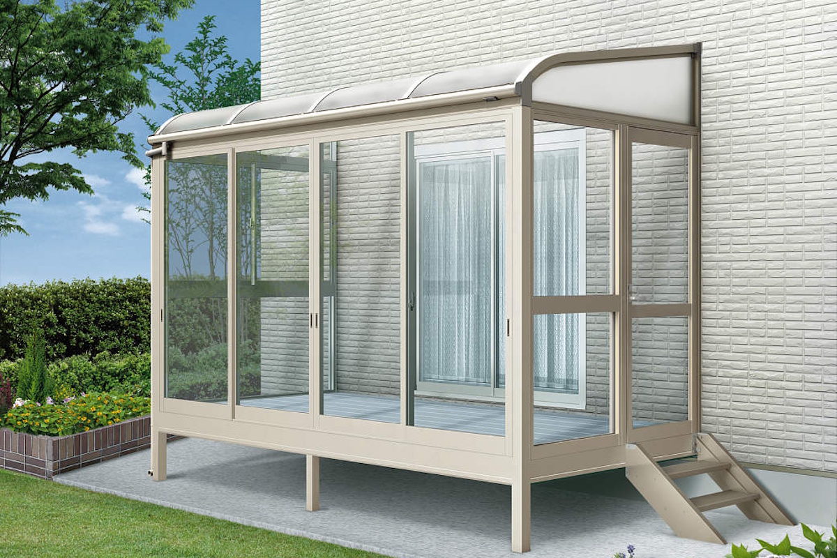 お庭への出入りや、テラス囲いの使い方など、ニーズに合わせて正面と側面の開口部のユニットを変更できます。