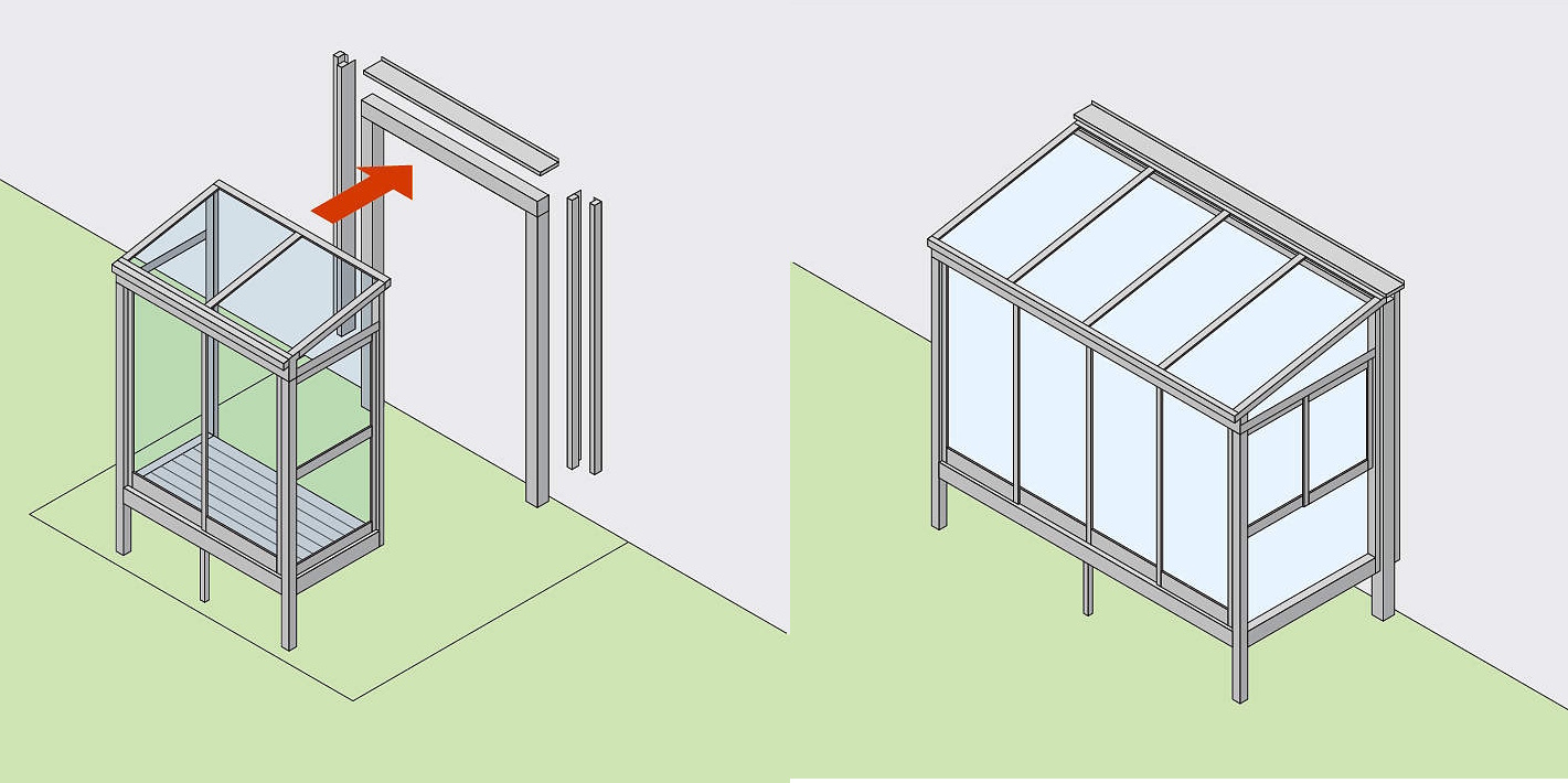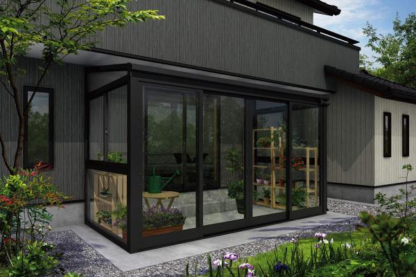 お庭への出入りや、テラス囲いの使い方など、ニーズに合わせて正面と側面の開口部のユニットを変更できます。