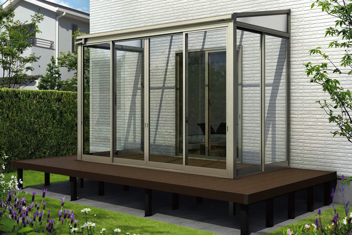 ルーム内に樹脂製デッキまたは人工木デッキ材の床がついているタイプ