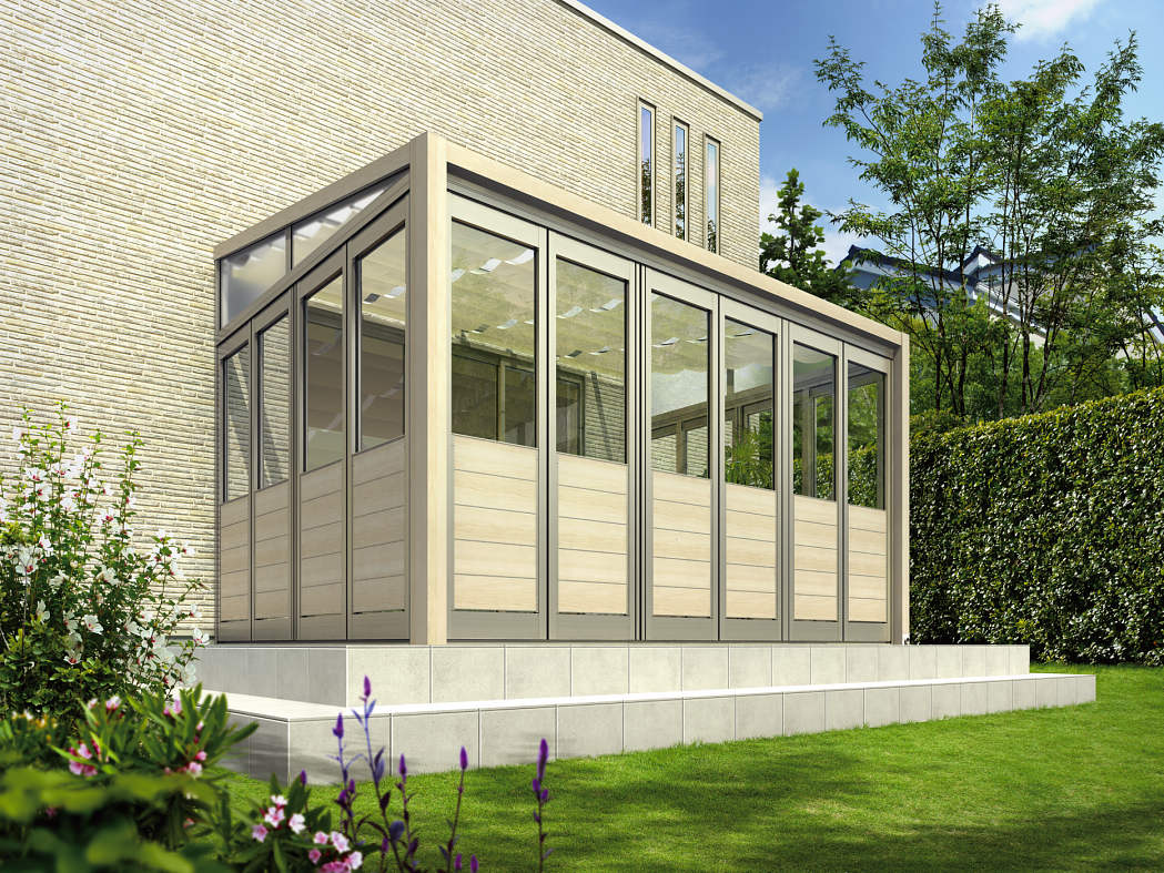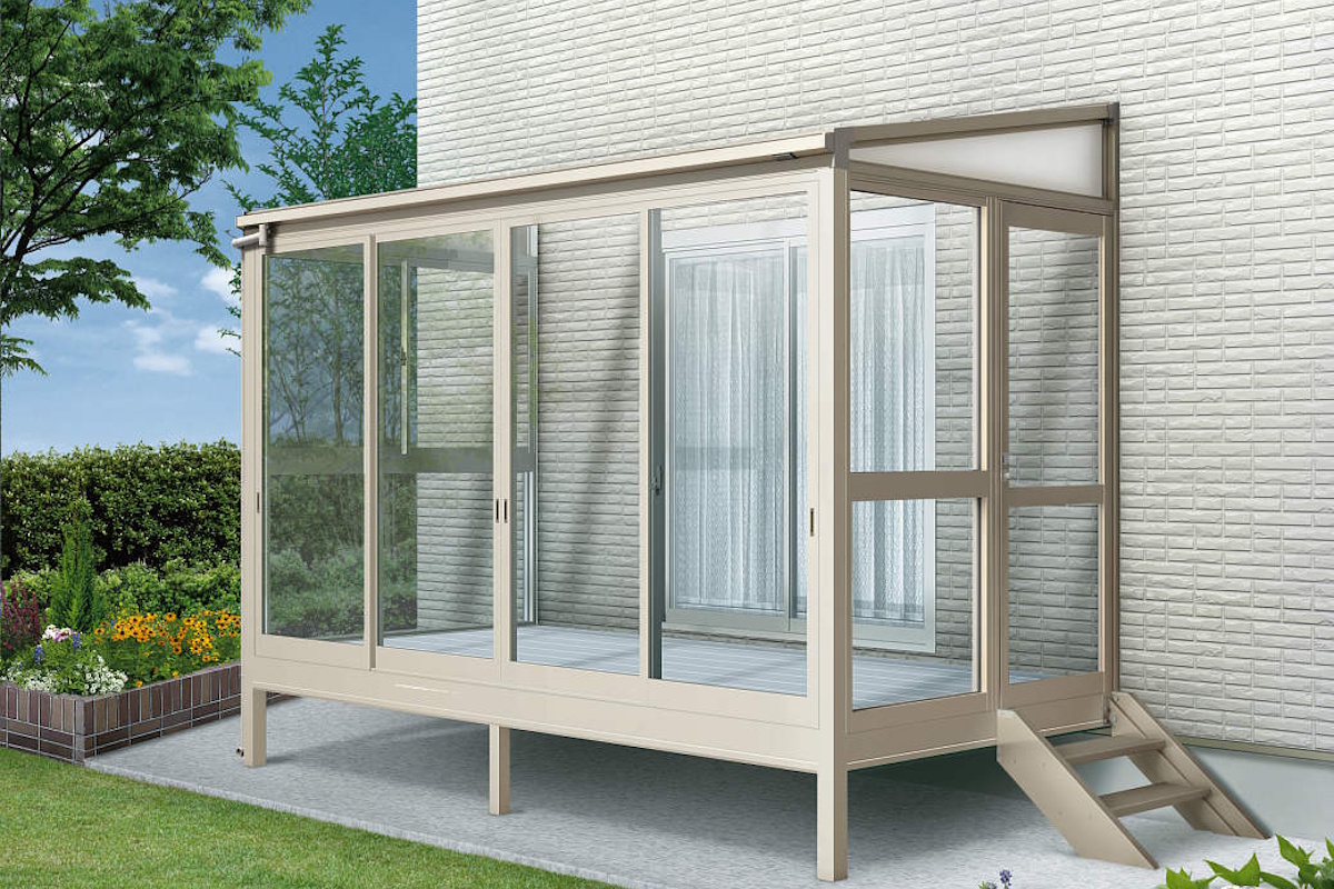 独立施工専用の柱を仕様することで、住宅の外壁に固定せず、自立した新しい構造のテラス囲い。