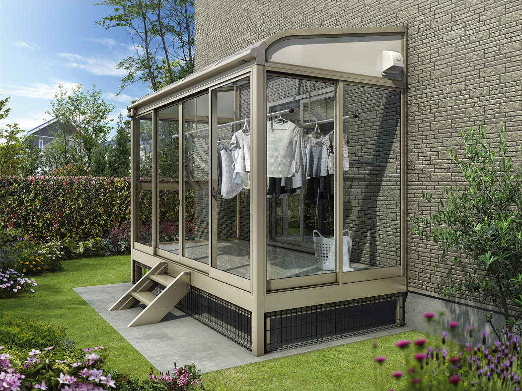 ソラリアテラス囲いには、竿掛けやカーテンレール、ロールスクリーンといった定番のオプションがそろっているのはもちろん、