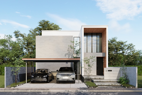 スチールならではの強度で、アルミ製カーポートよりも細い見付の柱構造が可能なため