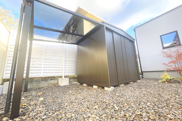 マツモト物置「大阪府・三重県総代理店」の当店がオススメする「MNシリーズ」。その中でもテラス付きの「MN-TERRA」シリーズをご注文いただきました。